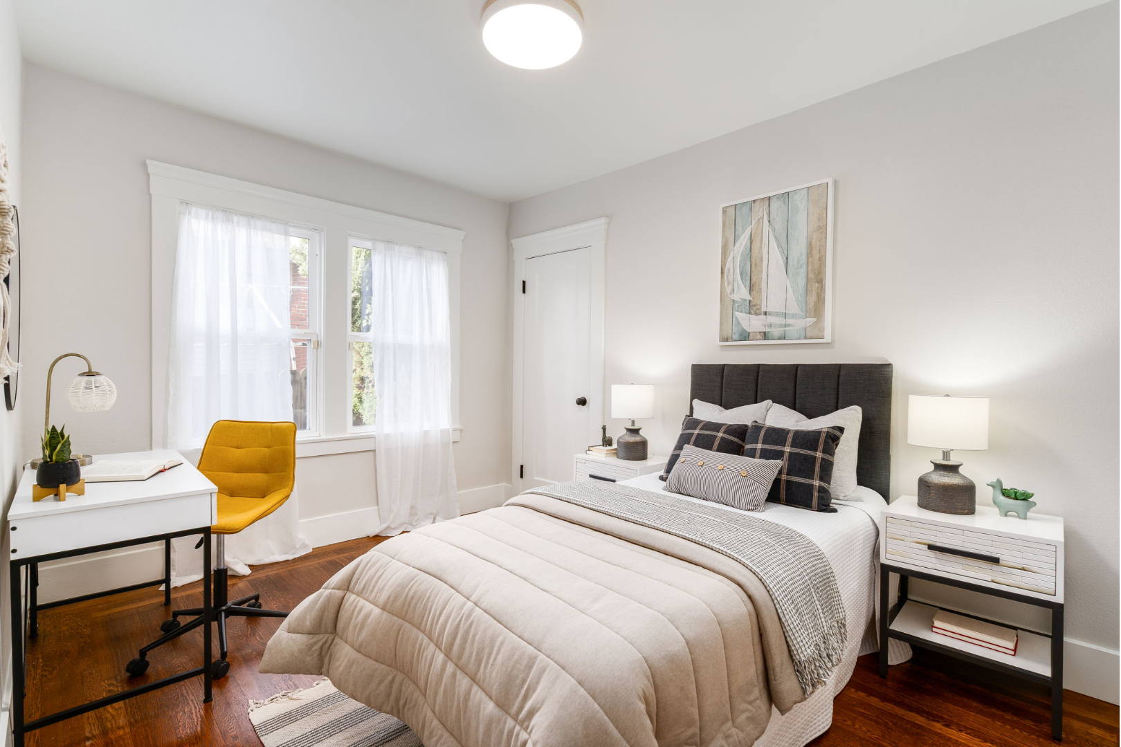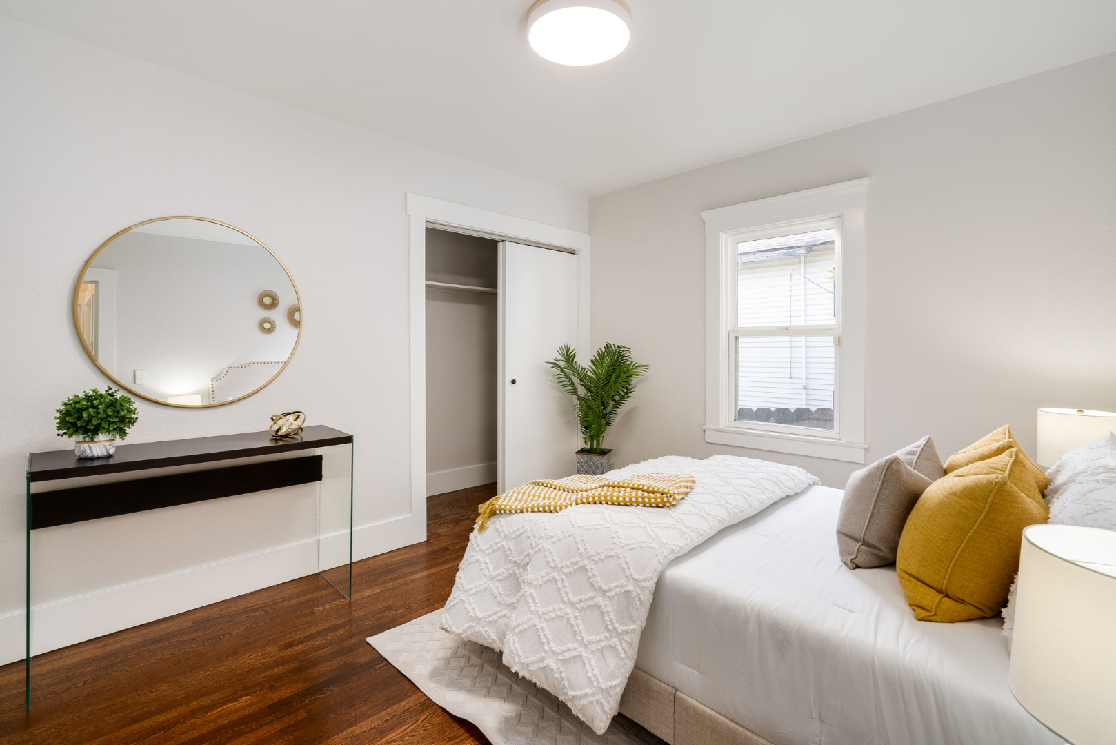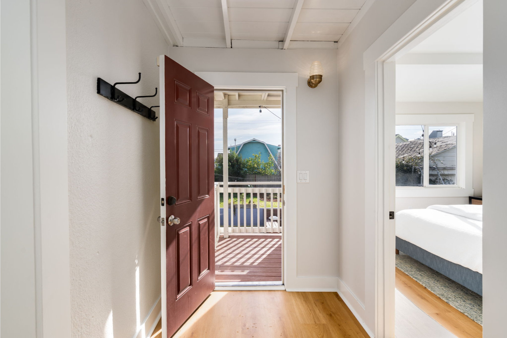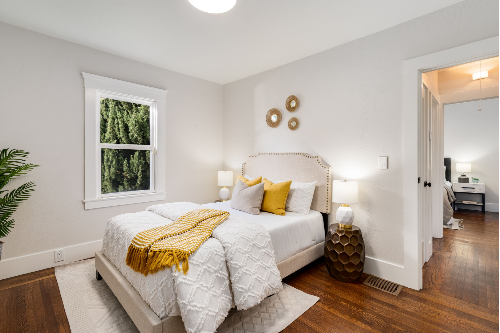 With three comfortable bedrooms and two full bathrooms, the layout is both functional and welcoming. The rear bedroom enjoys abundant natural light and serene views of the yard, while the updated bath features custom tile and modern finishes.