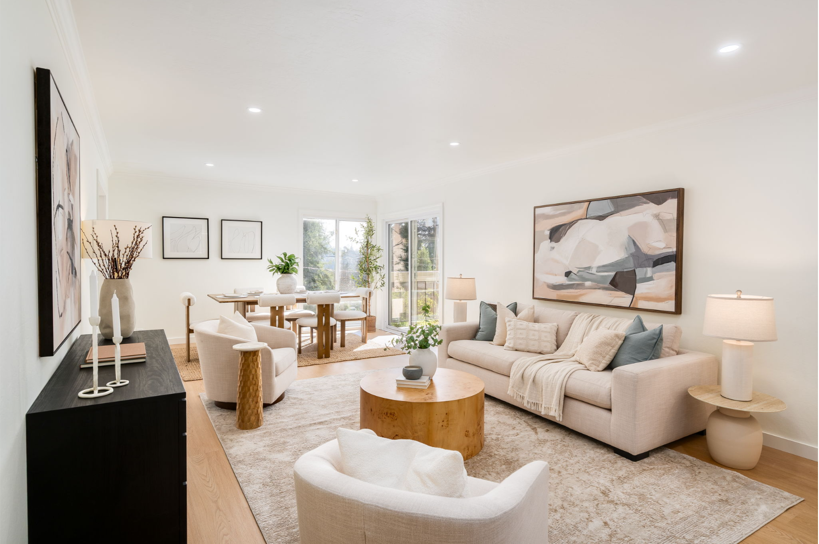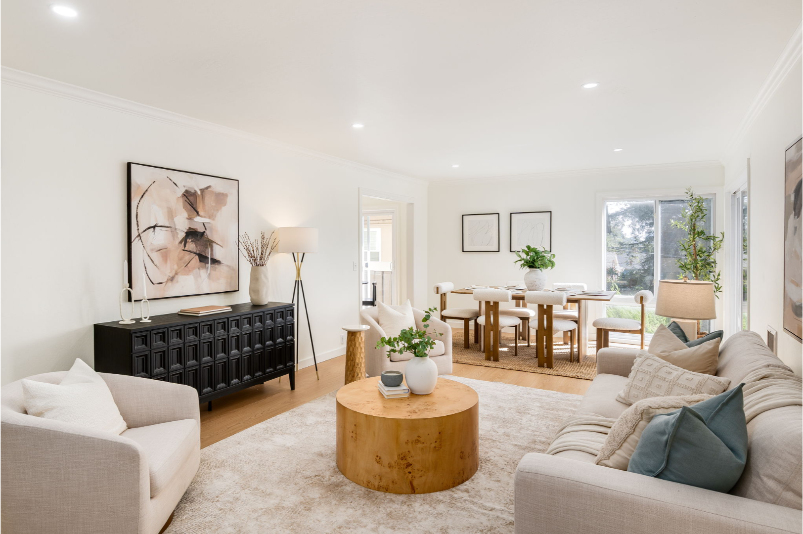 - Open living room/dining room