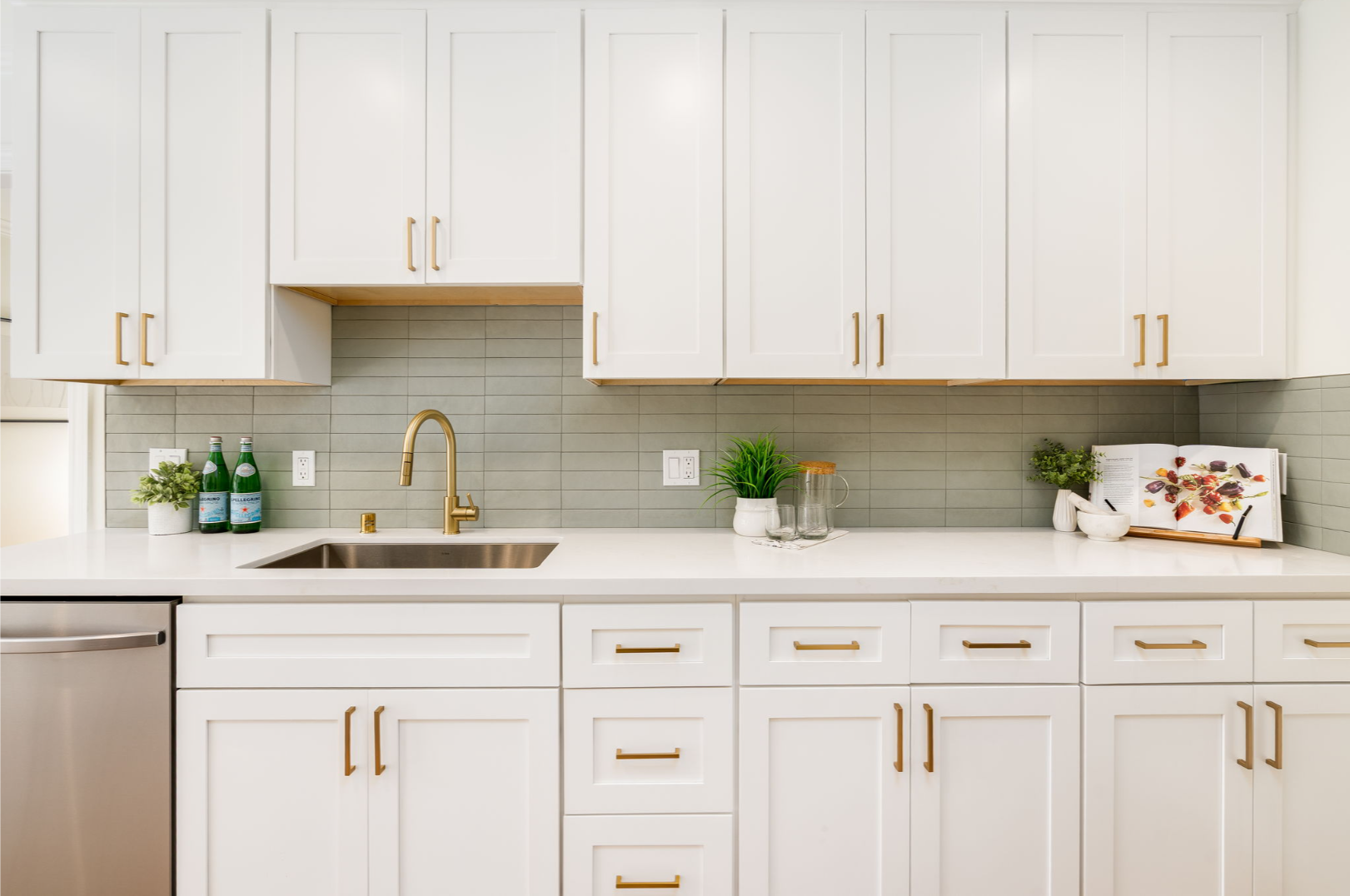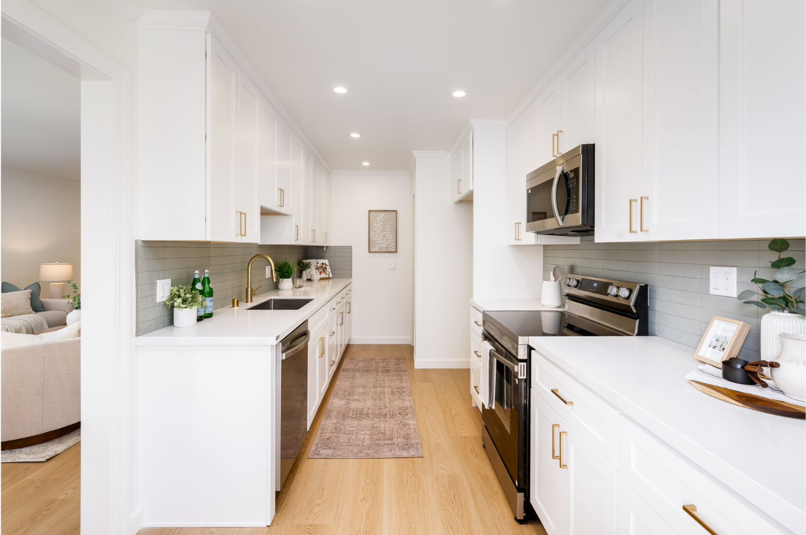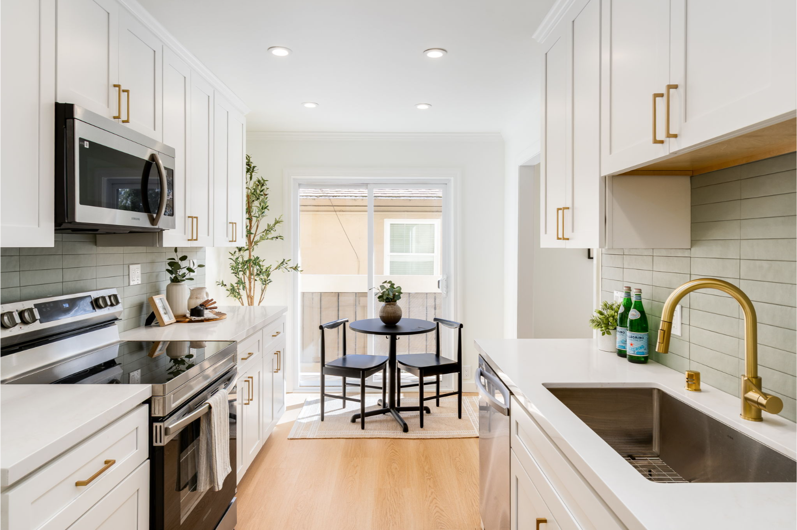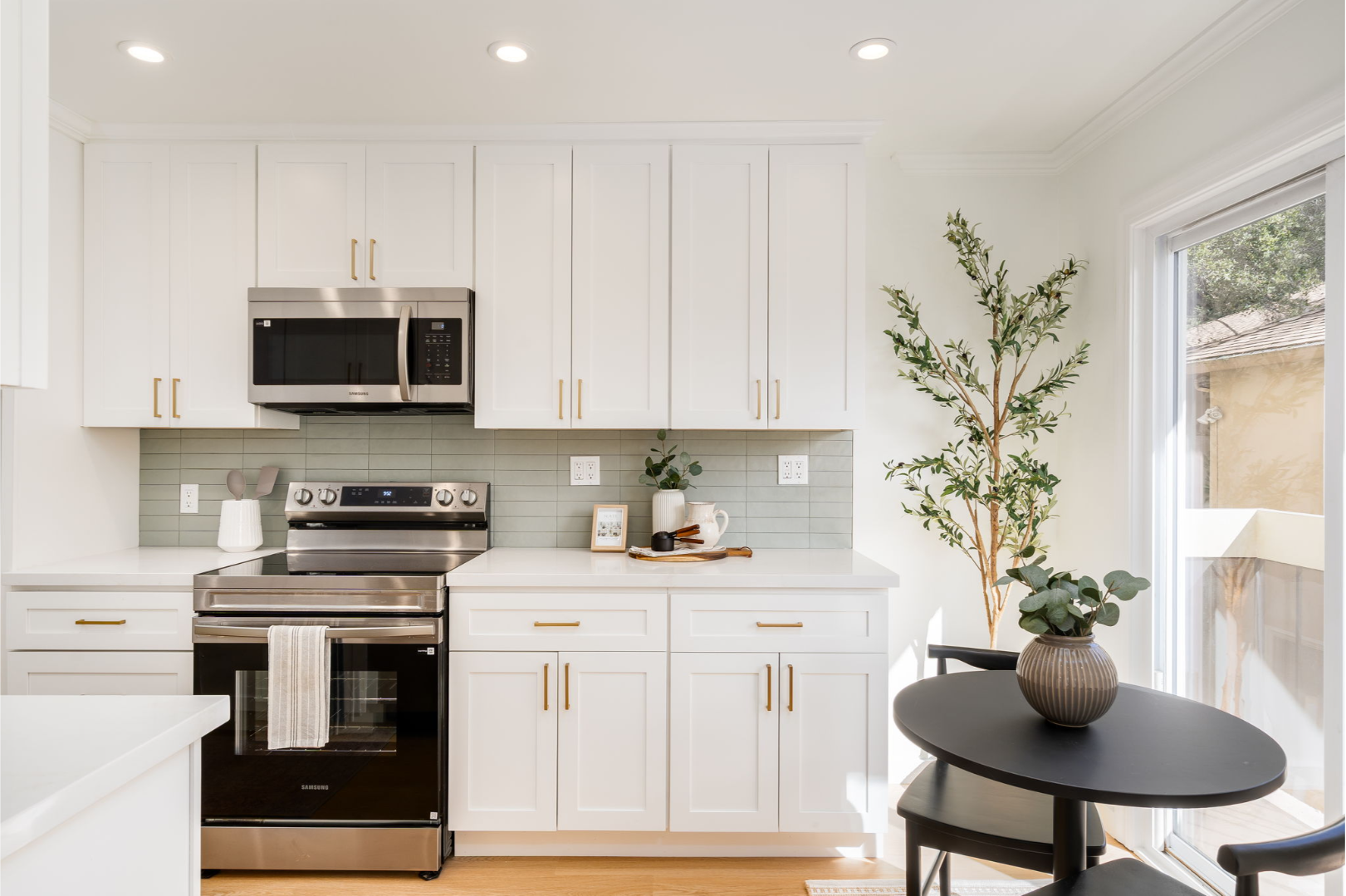 - Newly remodeled kitchen - shaker cabinets, quartz countertops, tiled backsplash, fixtures, and stainless steel appliances